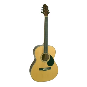 Акустическая или так называемая «эстрадная» гитара характеризуется более крупным корпусом (в отличие от классической гитары) и стальными струнами. Эти особенности позволяли инструменту звучать громче своего классического собрата, соответственно гитару было лучше слышно в джаз-бэндах и популярных оркестрах начала ХХ века – отсюда и термин «эстрадная». Позже именно эти инструменты взяли на вооружение исполнители блюза и фолка (отсюда второе название гитары – «фолк-гитара», хотя к этой категории чаще относят акустические гитары с немного уменьшенным корпусом): благодаря стальным струнам, на такой гитаре можно было использовать прием «бенд» («подтяжка») и играть слайдом – оба этих приема являются основополагающими при исполнении блюза. В настоящее время существует множество разновидностей «эстрадных» гитар, поэтому купить акустическую гитару, подходящую именно Вам, не составит особого труда. Основное, видимое на первый взгляд, отличие между ними – размеры корпуса: «джамбо», «дредноут», «гранд-аудиториум» и т.д. Самой популярной безусловно является гитара формы «дредноут» и именно ее можно смело порекомендовать при покупке своей первой акустики, так как модель является достаточно универсальной в плане применения в различных стилях и узнаваемой по звуку.