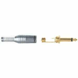 Профессиональный моно джек (папа) диаметром 6,3 мм -1/4', корпус из никелированной меди, позолоченный контакт и с гибкой пружиной для кабеля диаметром 7,3 мм.