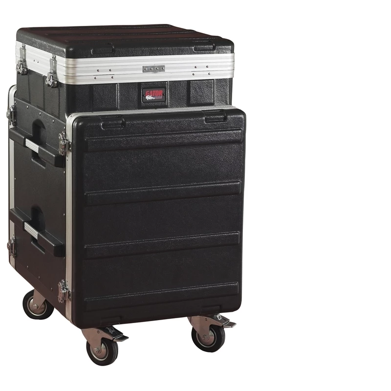 Рэковый кейс из особо прочного пластика на 10U верх/12U низ на колесах с откидным верхним рэком