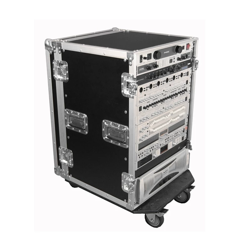 Флайт-кейсовые эксцентрик-замки и пружинная ручка для переноски с красной отделкой.