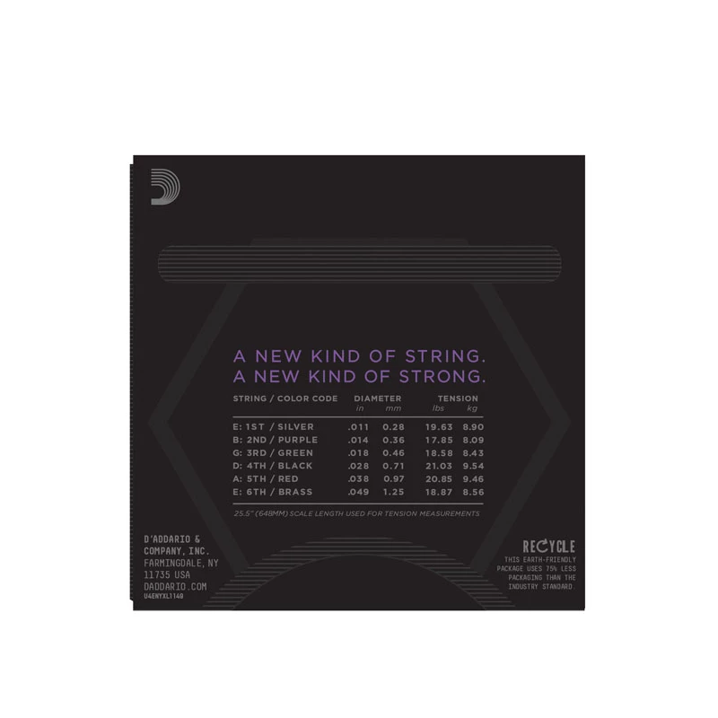 Гитарные струны новой революционной серии D’Addario NYXL можно 'подтягивать' сильнее, звучат громче и лучше держат строй, чем любые другие струны, которыми Вы пользовались раньше. Отточенные до совершенства в разработке и под полным контролем D’Addario при производстве, струны этой серии изготавливаются в Нью-Йорке. Эта струны очень прочные, так как имеют основу из высокоуглеродистой стали (high-carbon steel). Новая технология при производстве струн серии NYXL позволяет на 131% лучше держать строй.