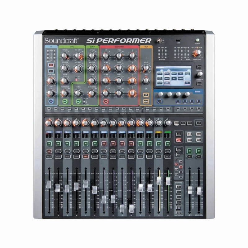Soundcraft Si Performer 1 – компактный цифровой микшерный пульт от знаменитого английского производителя. Благодаря своим размерам эта модель может использоваться не только в фиксированных инсталляциях в концертных залах, клубах или театрах, но также в турах и на различных выездных мероприятиях. Si Performer 1 отличается удобным и интуитивно понятным управлением. В этой компактной модели предусмотрено 448 различных вариантов обработок DSP. Имеется 16 микрофонных преампов, 8 линейных входов, четырехполосный полнопараметрический эквалайзер на всех входных каналов. Особенность данной модели – это возможность управления не только звуком, но также и светом. Настройки DMX можно сохранить также как и настройки звука и затем оперативно вызвать их одним касанием. Предусмотрено два слота расширения для опциональных карт ViSi Connect Expansion, что дополнительно увеличивает функциональность модели.
