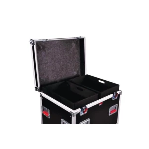 Универсальный туровый кейс с откидной крышкой на колесах .Ламинированная 12 мм фанера. Мощные утопленные поворотные защелки. Три съемных внутренних делителя позволяют транформировать внутреннее пространство. Два внутренних лотка с ручками для сопутствующих товаров.