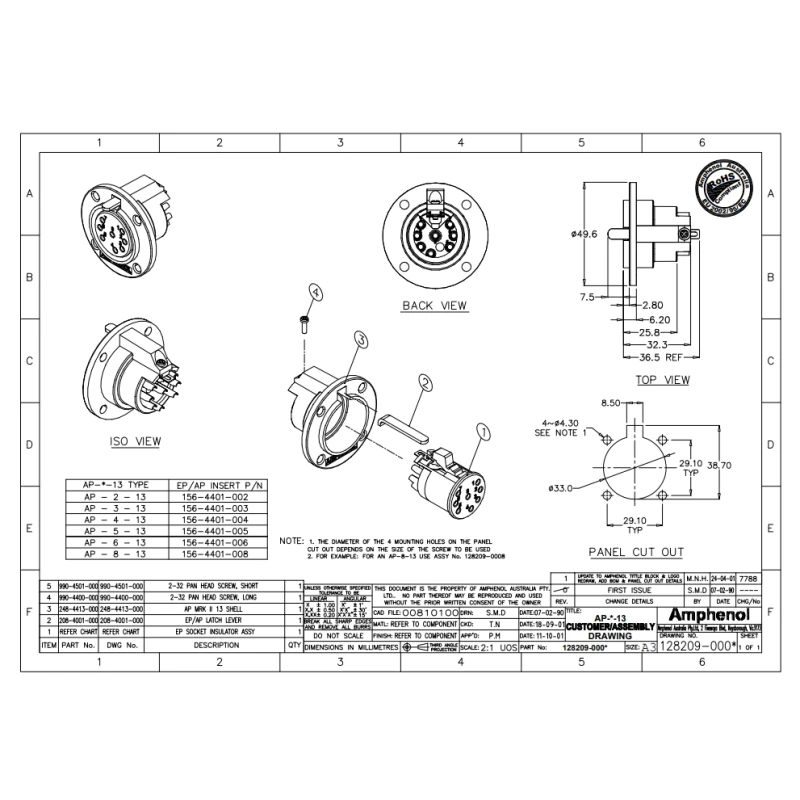 Amphenol AP-4-13 - разъем для громкоговорителей, гнездо на панель, круглый