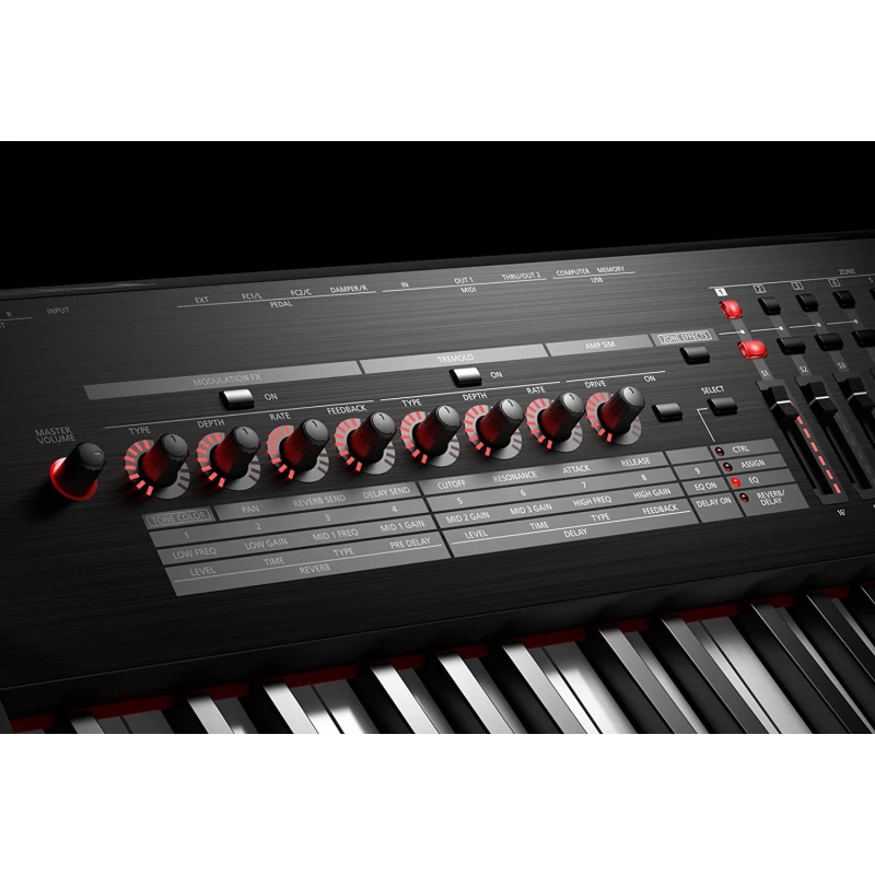 ROLAND RD-2000 – современное цифровое пианино, профессиональная модель, которая великолепно проявит себя и на сцене, и в студии. Это высокопроизводительный инструмент премиального уровня, оснащённый двумя независимыми звуковыми движками, V-Piano и SuperNATURAL, передовым управлением. RD-2000 – инструмент нового поколения, который оптимально сочетает в себе традиционные, проверенные временем технологии и суперсовременные функции. Широкий выбор доступных тембров (больше чем 1100), вариантов звучания, ритмических рисунков открывает новые горизонты для творчества. Инновационный управляющий интерфейс даёт возможность эффективно использовать RD-2000 как центр управления другими электронными инструментами на выступлениях. Акустическое звучание пианино – очень естественное, с прекрасной отзывчивостью, насыщенное и отлично детализированное. Движок SuperNATURAL позволяет использовать звучание классических цифровых пианино 60-х, 70-х и 80-х годов, в том числе RD-1000, самого первого пианино линейки RD. Доступен широкий выбор разнообразных эффектов, в том числе винтажных, включая знаменитый хорус BOSS CE-1 и SDD-320 Dimension D, разработанный Roland. Особенность представленной модели - 88-клавишная клавиатура нового типа PHA-50, в которой сочетается натуральное дерево и современные износостойкие литые части.