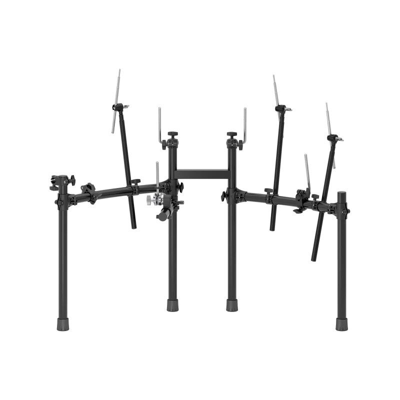 Пэд большого барабана – компактный, 5-дюймовый, с сетчатым пластиком и подушкой. Они обеспечивают такие же ощущения, как и при использовании акустического большого барабана, и схожее звучание, характерно гулкое. Пэд малого барабана имеет размер 12 дюймов и двухслойный сетчатый пластик, отличающийся высоким сопротивлением при игре и функцией регулировки натяжения. Два триггера дифференцируют удары в центр и обод для передачи соответствующего звучания. Каждый из 3 пэдов тома – с размером 8 дюймов и кевларовым пластиком, более удобным и менее шумным. Срабатывание триггера пластика и обода тоже раздельное.
