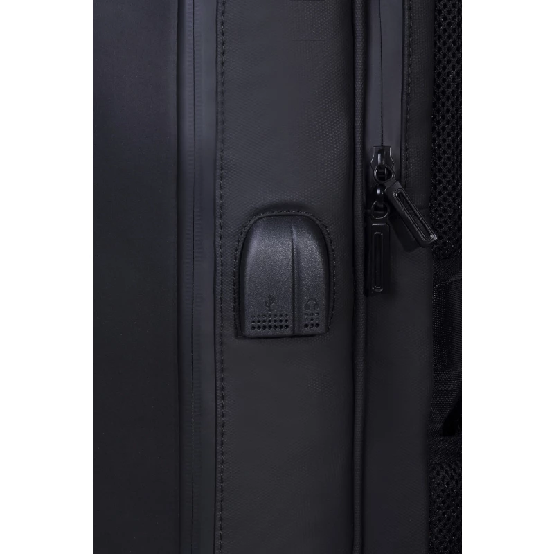 Рюкзак меет два внешних выхода USB для пауэр банка и выход jack 3.5 mm для наушников.