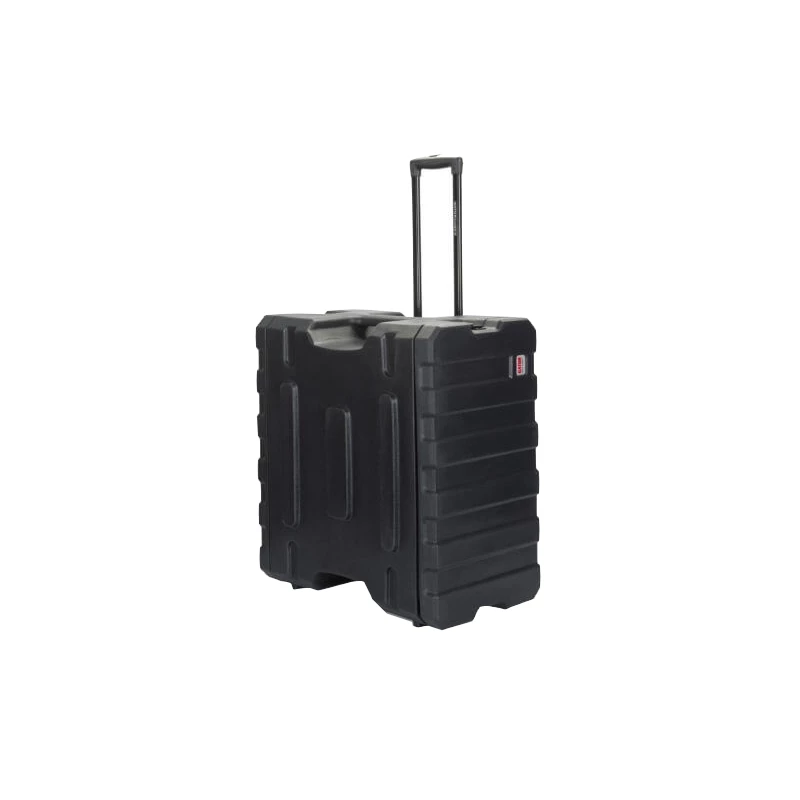 Практически неразрушаемая конструкция из формованного полиэтилена с возможностью складывания в стойку. Полноразмерные передние и задние крышки. Эргономичные боковые ручки для переноски. Встраиваемые стальные поворотные защелки. Передние и задние резьбовые рэковые пластины. Телескопическая буксировочная ручка. Прочные колеса.