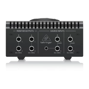 У контроллера есть общий регулятор громкости, кнопка Source для переключения источников и кнопка Monitor для переключения вывода. Дополнительно у устройства предусмотрены кнопки Mono, Dim и Mute. Коммутационные возможности: 4 TRS выхода, 4 TRS входа, 1 mini jack вход.