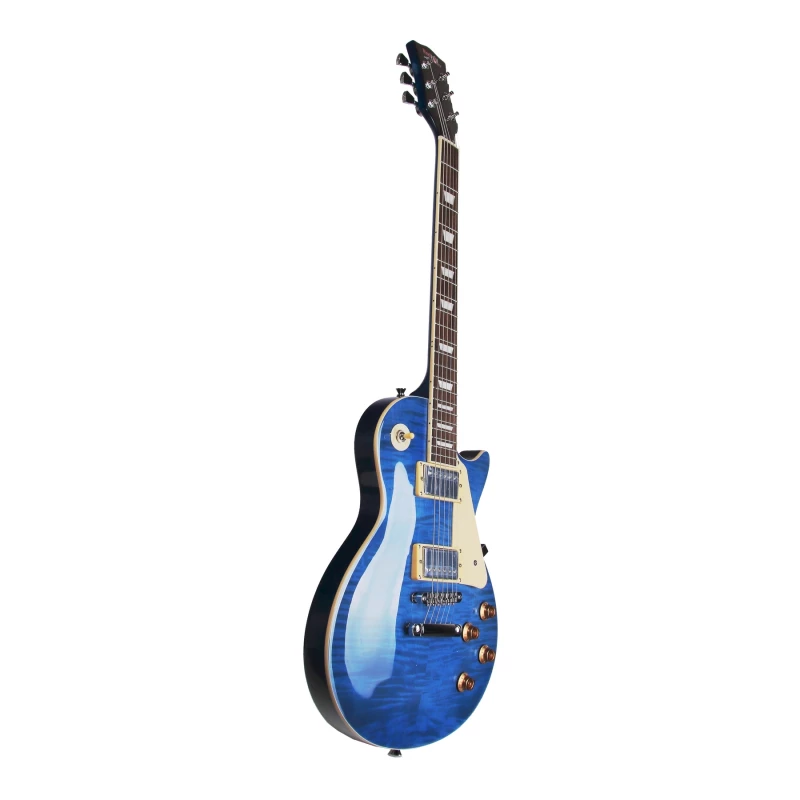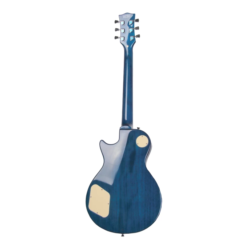 REDHILL LPX200 TBL – это электрогитара типа Les Paul. Её тонкий и изящный корпус выполнен из кленового топа и окоуме и представлен в полупрозрачной голубой расцветке под глянцевым лаком. Пикгард и обрамления звукоснимателей имеют аутентичный кремовый цвет. Бридж и колки – хромовые. Такое сочетание цветов и материалов придаёт электрогитаре элегантный, можно сказать, благородно-винтажный внешний вид.