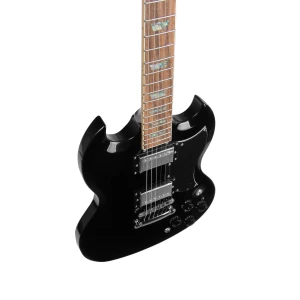 Корпус электрогитары выполнен из махагони и имеет два характерных выреза со стороны грифа, что делает ее узнаваемой на сцене (тип SG – Solid Guitar; “Даблкат”). Вклеенный гриф из махагони обеспечивает превосходную стабильность и сустейн, а никелевые закругленные лады и накладка из лаурели с инкрустацией трапеций перламутрового цвета придают этому инструменту особую привлекательность.