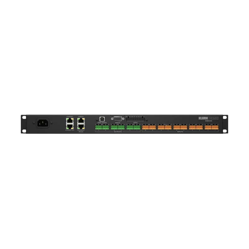 KLARK TEKNIK DM8500 - цифровой аудиопроцессор с конфигурируемым DSP и AEC (Acoustic Echo Cancellation), поддержкой DANTE и AES67.