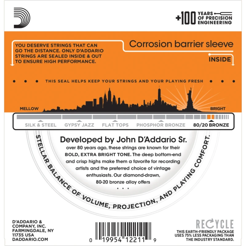 Покрытие: бронза 80/20. Обмотка: круглая. Натяжение: легкое.